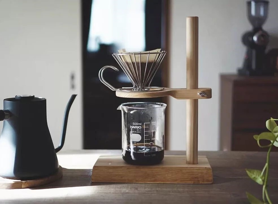 桧の無垢材の温かみの手触りが感じられ、オシャレに楽しくコーヒーを淹れることができます。