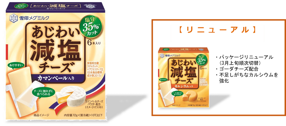 現在発売中の「あじわい減塩チーズ」は、チーズの塩分が気になるお客様から評価いただいており、塩分控えめのニーズに応えるため、ラインナップの強化を図ります。