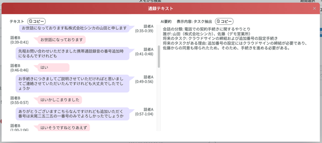 そうした課題に応えるため、業種を問わず、通話中に発生する多くのタスクやフォローアップ事項を自動で整理し、顧客対応の品質向上を実現することが可能となる「AIタスク抽出」機能を追加しました。