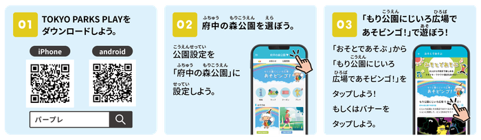※アプリストアで「東京都公園協会」、「TOKYO PARKS PLAY」、「パープレ」のいずれかで検索。