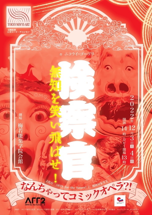 認定NPO法人 TOKYO NOVYI・ART 能楽堂公演「検察官」が2022年12月3日 (土) ~ 12月4日 (日)に梅若能楽学院会館(東京都中野区)にて上演されます。チケットはカンフェティ(運営:ロングランプランニング株式会社、東京都新宿区、代表取締役:榑松 ⼤剛)にて発売中です。