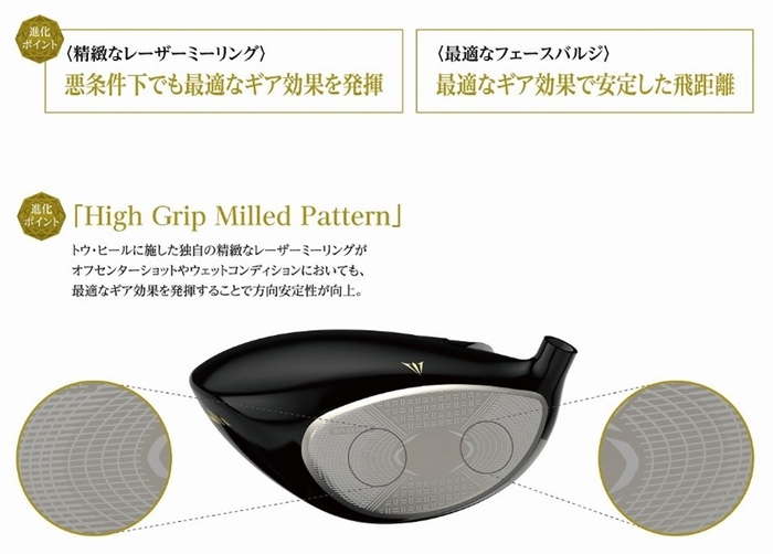 ターゲットユーザーに合わせて最適化したフェースバルジ設計に加え、より精緻な独自のミーリングパターンを施した「NEW ドローバイアス設計」を採用。フェースを開いた状態やオフセンターでのショット、ウエットコンディションなど様々な条件下でも最適なギア効果を発揮することで、大きな飛距離を安定して実現します。