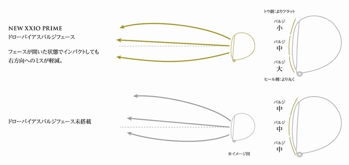 ・スライスによる飛距離ロスと方向のバラつきを低減する「NEW ドローバイアス設計」