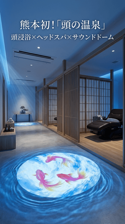 施設では「頭の温泉」をコンセプトに、頭浸浴・温泉スチーム・ヘッドスパを組み合わせた独自の施術を提供。血行促進や頭皮環境のケア、脳疲労のリフレッシュを目的とした新しいリラクゼーション体験を提案します。