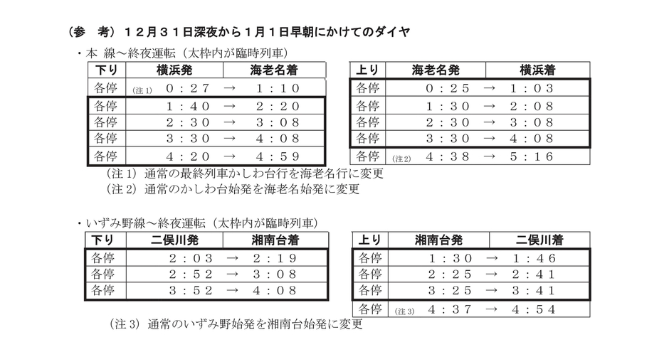 ■相鉄線の年末年始特別ダイヤについて