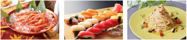 ◆魚介類の宝庫、越前。宿からほど近い地元・三国港水揚げの甘えびを心ゆくまでお楽しみいただける海鮮好きにはたまらない夏のフェアでおもてなしします。お造りや握り寿司など鮮度抜群の素材の美味しさをダイレクトに味わう逸品や一手間かけたメニューが並ぶフェアにご期待ください。