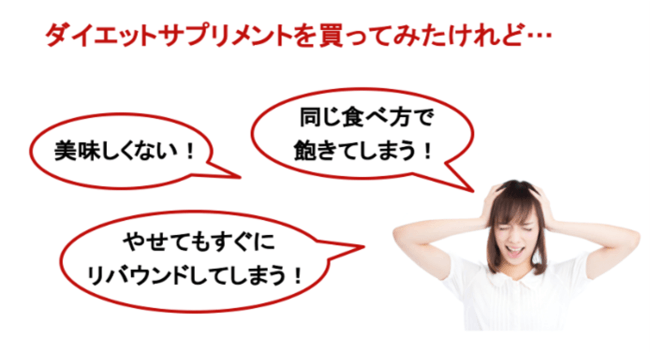 ダイエットにおける悩みの一つが「食事」。摂取カロリーの調整はダイエットの基本ですが、食事を自己管理することは非常に難しいものです。手軽にバランスの良い食事をとるため、多くのダイエッターが選択しているのは、シェイクやスープなどのダイエット専用食。しかし「好みの味ではない」「同じ味・食べ方で、すぐに飽きてしまう」「長続きしない」という声も多く寄せられていました。