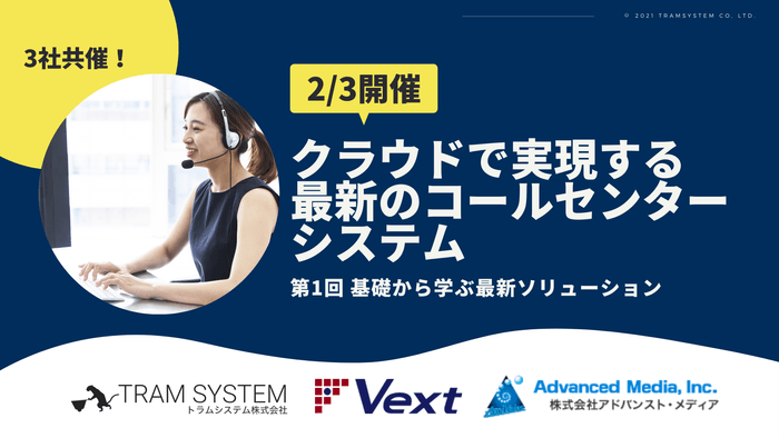 2021年2月3日(水)、株式会社アドバンスト・メディアとトラムシステム株式会社、ベクスト株式会社共催のオンラインセミナーを開催します。