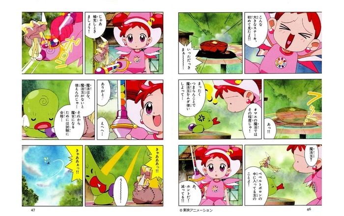 『アニメコミックス おジャ魔女どれみ 1』収録「第1話 私どれみ! 魔女見習いになる!!」より。(c)東映アニメーション