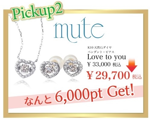 女性たちの”欲しい!”を詰め込んだ新ブランド【mute(ミュート)】の、天然石ダイヤモンドピアスとペンダントのセット33,000円(税込)が10%OFFで29,700円(税込)に!