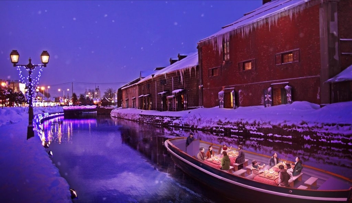 小樽運河で観光ボートを運行している「合同会社小樽カナルボート」のご協力のもと、船にこたつを設置します。冬の小樽の平均気温は、マイナス1.5度(12~3月)と寒く感じる時期ですが、こたつでぬくぬく温まりながら、雪景色やイルミネーションを思う存分に楽しめます。