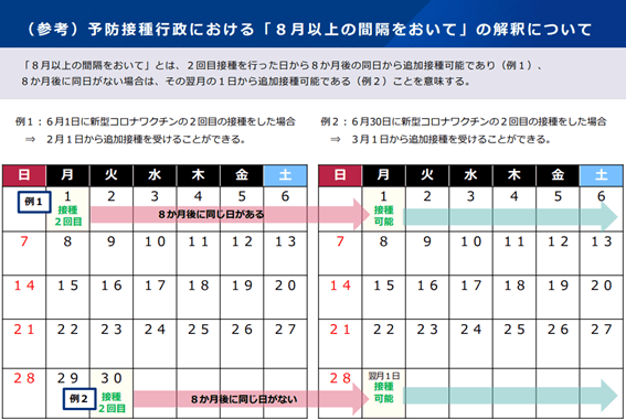 2回接種後の約8カ月後のイメージは、次の資料のとおりです。私は、2021年8月2日に2回目の接種を行いましたので、4月2日以降に接種できるということになります。