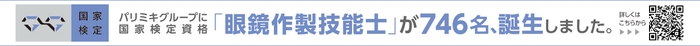 2022年4月より、国の定める「技能検定」の職種に「眼鏡作製職種」が新設され、国家検定資格「眼鏡作製技能士」がスタートし、パリミキグループでは現在746名の合格者が在籍しています。(※自社調べ) 多様化・高度化するお客様のニーズにあわせて、「適切な診断・治療」と「適切な眼鏡作製」の双方の実現に向け、眼鏡技術者が眼科専門医と連携しつつ、皆様により良い眼鏡を提供し、目の健康を守れるよう、眼鏡作製の技能を高めてまいります。