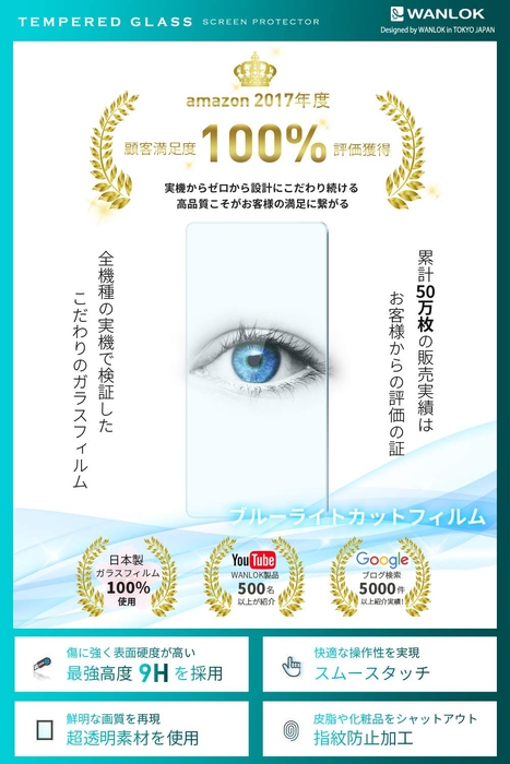 ガラスフィルムを貼っていることを忘れるほどの薄さと、パフォーマンスを最大限に発揮する日本製高品質ガラスを使用、更に90%ブルーライトカットを実現し、最高級の滑り心地を実現した当店自慢のガラスフィルム、WANLOKの定番人気商品です。