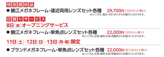 ※サングラスを除きすべてフレーム+レンズのセット価格です。※価格はすべて税込にて表記しております。※いずれも数に限りがございますので売り切れの際はご容赦ください。