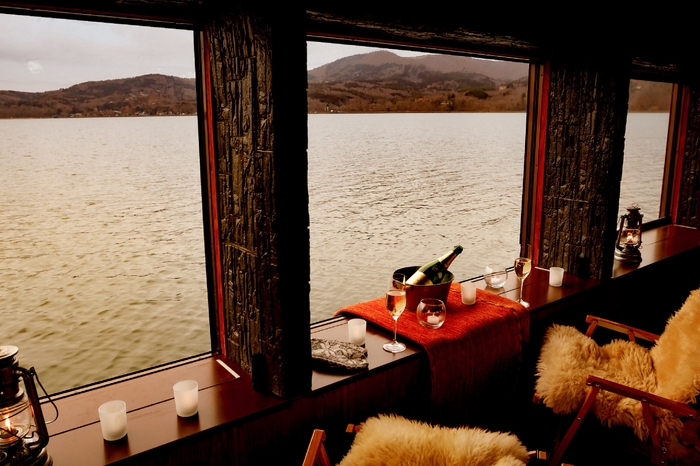 各施設が独創的なテーマで、圧倒的非日常を提供する「星のや」。日本初のグランピングリゾート「星のや富士」では、2021年12月1日~2022年2月28日の間、ダイヤモンド富士を目の前に貸切の船で美酒を嗜む「湖上の絶景アペリティフ」を開催します。凛とした空気が漂う山中湖の湖上から眺めるのは、太陽が富士山の山頂に重なるときに見られる現象・ダイヤモンド富士です。暖房器具やローチェア、ブランケットなどを備えた貸切の船で、酒米のダイヤモンド・愛山と山梨の銘水で醸された地酒とともに、絶景を優雅に味わえます。