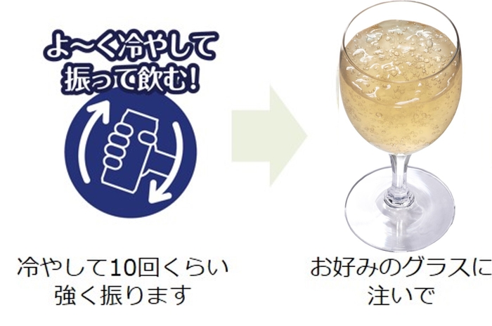炭酸入りなのに振ってから飲むという意外な楽しさと、ぷるぷるした食感、国産果汁にこだわった人気の商品を、高級感のあるデザインにリニューアルします。本商品をよく冷やし、約10回振ることで、ひんやりぷるぷるした食感と、口の中でシュワっとはじける炭酸をお楽しみいただけます。お好みのフルーツをそえたりジュースで割ったり、ご家庭でも手軽にアレンジができ、“映える”お酒として家飲みを華やかに彩ります。