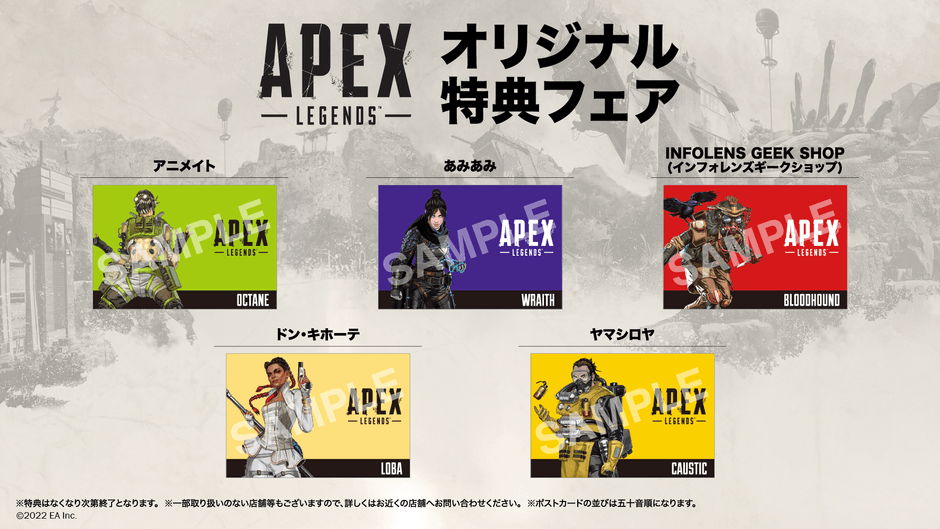 「Apex Legends(TM)」オリジナル特典フェア開催決定! 対象商品購入で店舗ごとに異なる オリジナルポストカードをプレゼント!