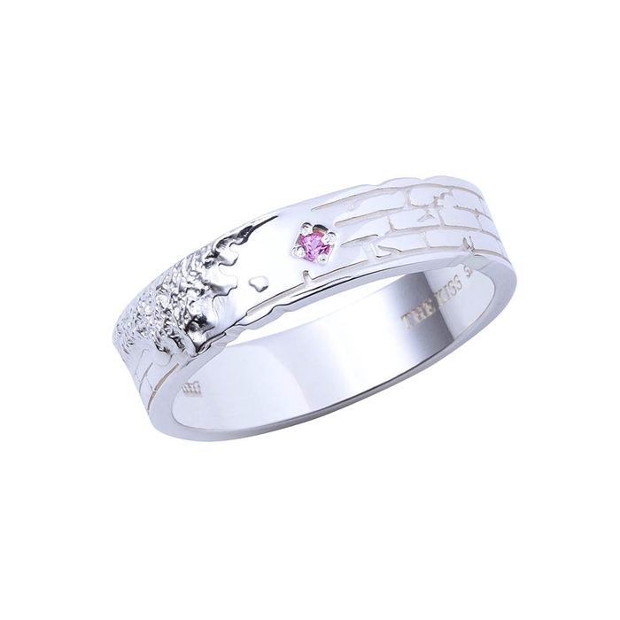 平打ちタイプのリングにレンガ調を取り込み、センターにはヒストリアをイメージしたピンクサファイアのストーンをセット。