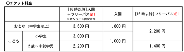 ※[16時以降]フリーパスのみは、園内インフォメーションで販売いたします。