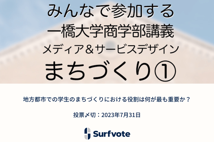 一橋大学商学部の講義で活用するイシュー第一弾!「地方都市での学生のまちづくりにおける役割は何が最も重要か?」Surfvoteで投票開始
