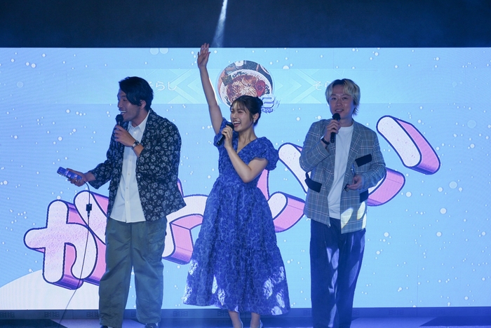 渋谷さんと見取り図さんが3人で歌唱し、Cheer(チア―)によるステージ演出を体験していただきました。渋谷さんは「アイドル時代に貰っていた様な応援を肌で感じられて高揚感がありました。この高揚感を日常で感じる機会があるのが素敵だと思うので、ぜひ味わっていただきたい」と笑顔でコメントされました。