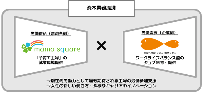 ツナグ・ソリューションズとママスクエアが 資本業務提携契約を締結 女性活躍の推進を目指し、“働きたくても働けないママ”と “女性活用を望む企業”を支援