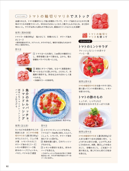 いくつかの野菜は、コラムで本田明子さんおすすめの野菜のストック方法を紹介しています。ストックした野菜を使って簡単に作れるレシピも紹介。