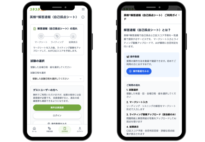 英検®解答速報〈自己採点シート〉操作迷子ゼロを目指してチュートリアル常設