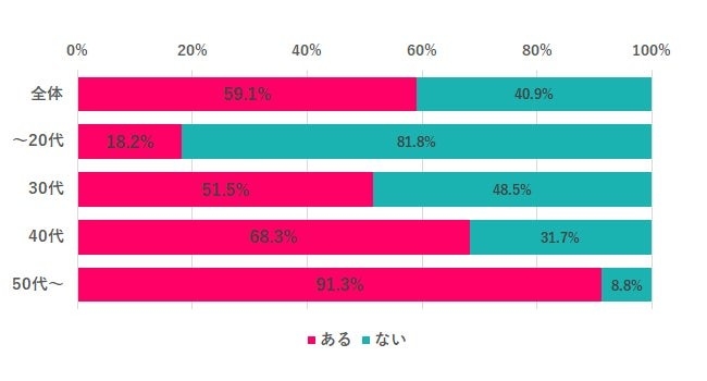年下の上司と働いた経験があるかを尋ねたところ、全体の59.1%が「年下の上司と働いたことがある」と回答。年代別の回答を見ると、20代以下は18.2%に対し50代以上は91.3%と、年齢を重ねるほど年下の上司と働いた経験があることは、当たり前になる様子が見て取れます。