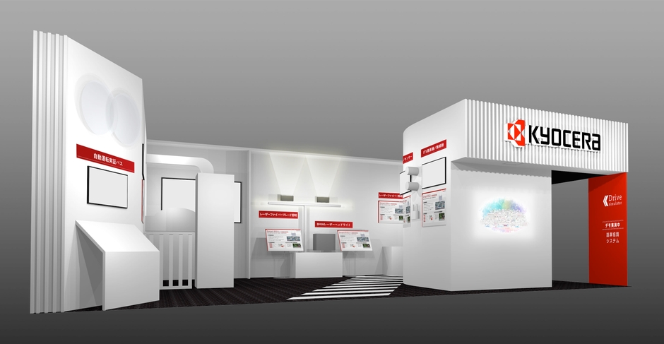 京セラはステレオカメラ、ミリ波レーダー、周辺検知カメラなど自動車側の自動運転技術を支えるセンサーや部品の研究開発にも注力しています。それらのセンサーや部品に加え、先進モビリティ社と共同開発した車両制御ECUを搭載した、実証実験用自動運転バスを、3Dホログラムサイネージでご紹介します。