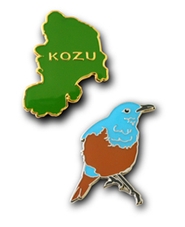 シンプルな仕様に地域性が盛り込まれ、郷土を知るための事業に参加した証として、思い出とともに手渡されるオリジナルピンズが、神津島村商工会様のご依頼で製作されました。商工会のある神津島は伊豆諸島のほぼ中央、竹芝桟橋から高速船で3時間45分の緑豊かな神秘の島。美しい色で仕上げられたオーダーメイドアイテムは、神津島のイメージがそのままデザインされた「島ピンズ」と「イソヒヨドリピンズ」の2種類です。