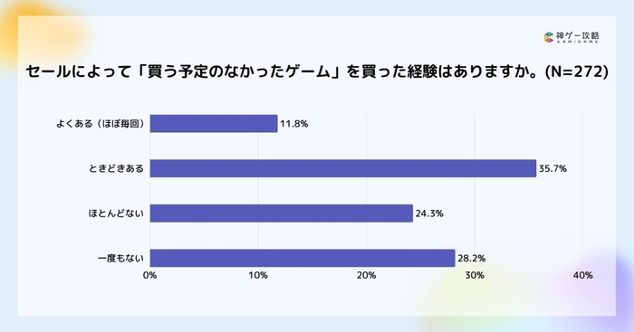セールによって予定外のゲームを購入した経験の有無はほぼ半々