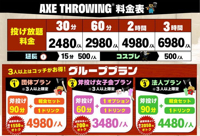 ◉日本斧投げ協会公式斧1本プレゼント+ 斧投げ30分無料