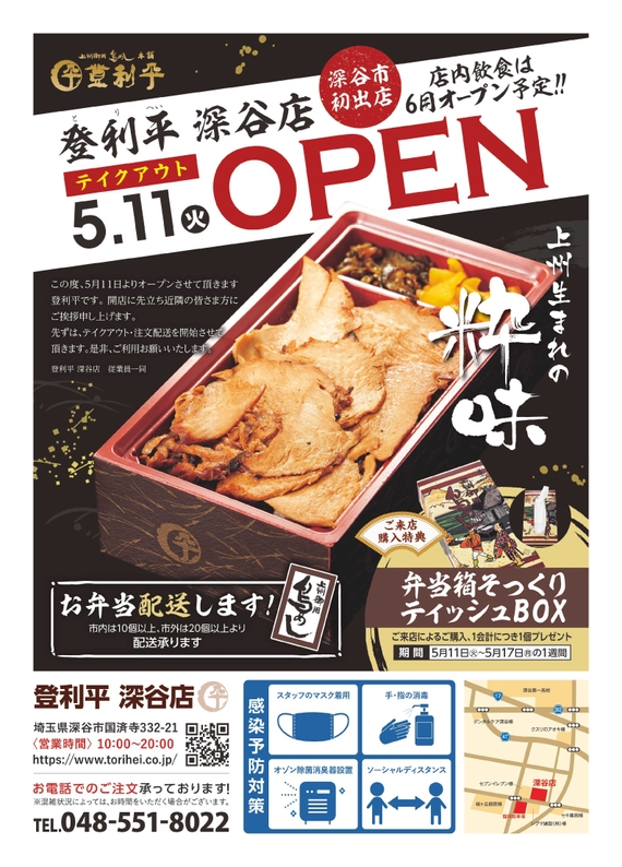 群馬県民に愛されてきた「鳥めし弁当」の登利平深谷店がオープン! 5月11日よりテイクアウト販売開始