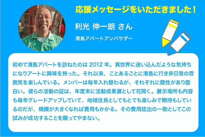 皆さまとともに、清島アパートの「これから」を創っていきたいと思います。