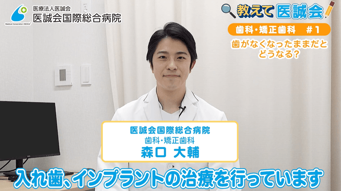 第1回の動画では、医誠会国際総合病院の歯科・矯正歯科 森口大輔先生が、歯を失うことで起こるリスクについて、イラストを使いながらわかりやすく解説します。
