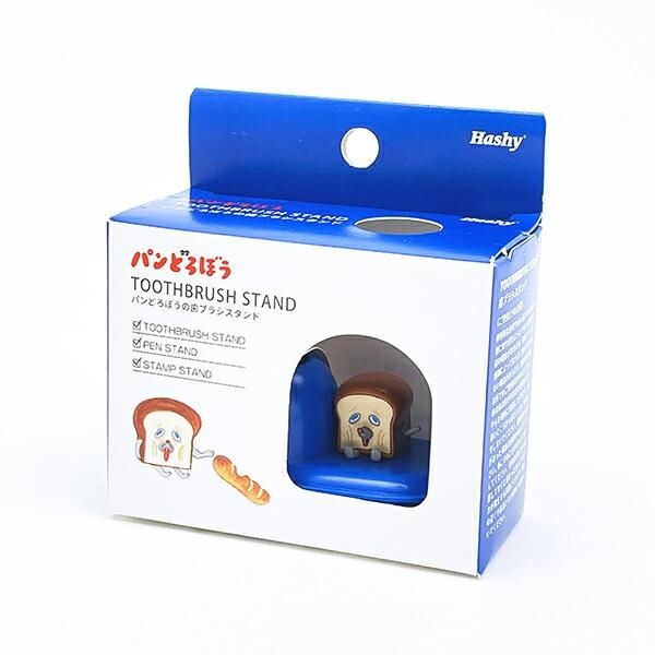 まずは、パンどろぼうの歯ブラシスタンド。歯ブラシスタンドの横に、パンどろぼうのフィギュアがちょこんと座っています。
