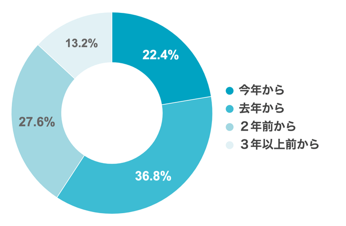 大多数の86.8%が直近3年ごろとの回答でした。まだまだ自治体側の対応が追いついていない印象もありますが、今後増加していくことを期待します。