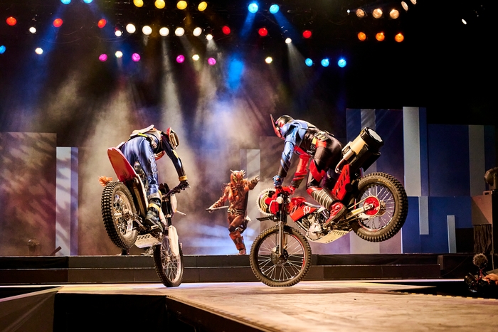 さらにホールならではのサウンドとライティング、ワイヤーアクションがシンクロする中、現在放送中の最新作「仮面ライダーギーツ」を筆頭に、平成・令和の仮面ライダーが勢揃いして繰り広げられる熱戦は胸アツ間違いなし。