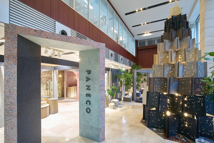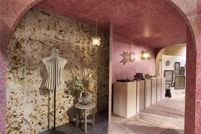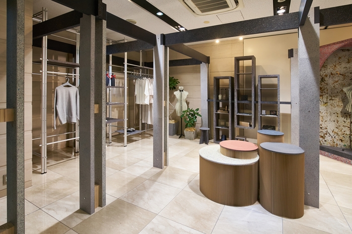 繊維リサイクルマテリアル「PANECO」は最新の展示会で、100%再リサイクルが可能な【サスティナブル店舗】を提案