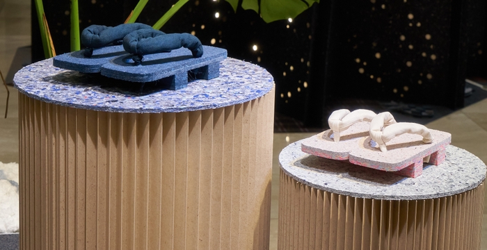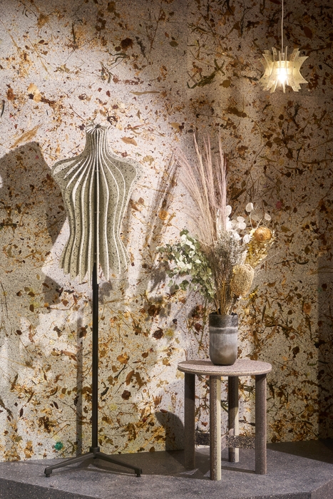展示内容:ファッションとインテリアの世界をつなぐ新たな循環モデル。廃棄衣類繊維のアップサイクルとサーキュラーエコノミーをデザインし、イベントやオフィス等のさまざまな空間の内装やディズプレイ什器、家具へと生まれ変わる、クリエイティブな世界観を生み出します。