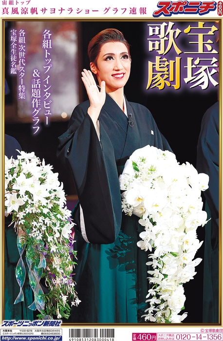 スポーツニッポン新聞社は「宝塚歌劇特集号23年春」を5月1日から順次発売します。今回の特集号では、5年にわたり宙組を率いたトップスター真風涼帆、トップ娘役・潤花のサヨナラ公演詳報および宝塚大劇場での千秋楽、サヨナラショー詳報を1面から3面まで大々的に展開します。1面は宝塚大劇場での千秋楽・サヨナラショーでの貴重なショットを。裏面では宝塚大劇場でも大評判の真風ボンドの美しいショットを掲載します。さらに、新トップ娘役・夢白あやを迎えた雪組の新トップコンビお披露目公演をはじめ、全組の大劇場公演、全トップスターのインタビュー、次代を担うスターの主演公演、新人公演、初舞台を踏んだ第109期生を含めた全生徒名簿も掲載します。