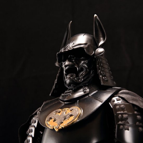 もしも戦国時代にバットマンが存在したら、、、というコンセプトのもと仕立て上げられた逸品。漆黒のマントや仮面、コウモリのような耳といったバットマンのトレードマークが、日本古来の甲冑が見事にフィットし、唯一無二の鎧飾りとなっています。