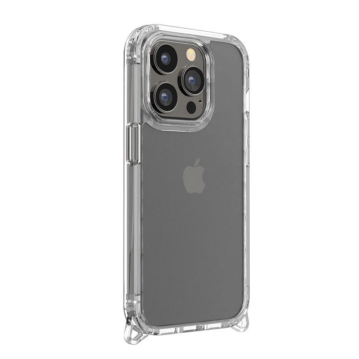 持ち運びに便利なショルダーストラップやハンドストラップを取り付けられるショルダーストラップホール付クリアハイブリッドケースです。クリアデザインでiPhone本体の美しさを最大限に活かします。耐久性のあるポリカーボネイトとしなやかなTPUを組み合わせたハイブリッド設計で端末本体をしっかり保護します。ケース底面部には、お手持ちのショルダーストラップやハンドストラップを取り付けられるストラップホール付き。