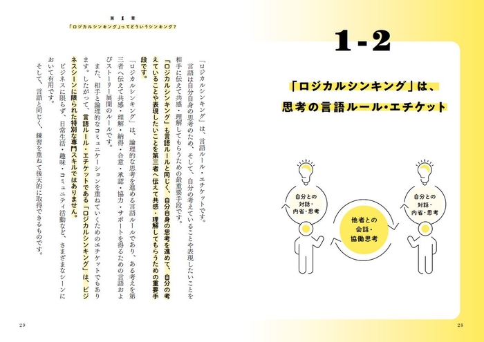 そして、後半では、ビジネス・日常シーンで役立つ具体的なロジカルシンキングの「型」を共有し、最終章では、ロジカルシンキングと発想法の関係についても解説します。挫折してしまう人が多い「ピラミッドストラクチャー」についてもわかりやすく解説します。
