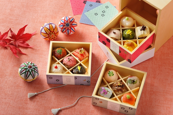 この秋、界ではお夜食として「ご当地手まり寿司アソート」を提供します。引き出しをあけると、色とりどりの手まり寿司がおさめられており、まるで宝石箱のようです。界 日光からは日光湯波と醤油糀の手まり寿司、界 日光ではかんぴょうと錦糸卵、界 鬼怒川はローストポークの手まり寿司。その他12の界を象徴する手まり寿司を味わうことができます。客室で秋の夜長を過ごすのにぴったりのアイテムです。