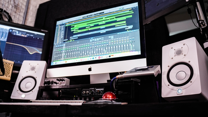 録音の環境をメジャー現場のブースに限りなく近づけるため、特別遮音効果を施した、カスタムオーダーの宮地楽器販売のV ERY-Q Plusを録音ブースとして使用。