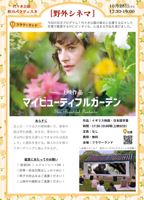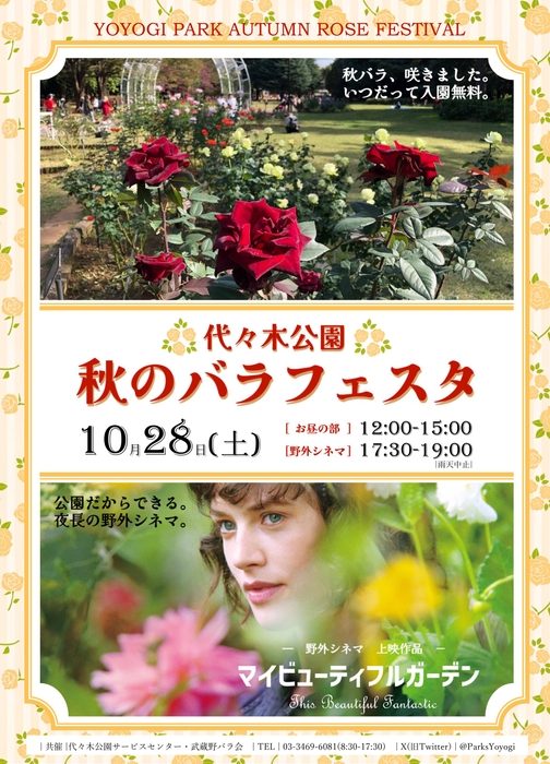 10/28(土)~【代々木公園】「秋のバラフェスタ」開催! 野外シネマも登場!