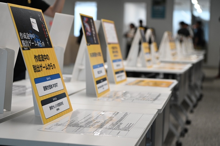 高校生だけでの制作や準備、そして実際にお客さまを入れての運営は大変なこともあったかと思いますが、どの団体も最大限に良いイベントにするため、時間ぎりぎりまで準備やリハーサルを行なっていました。緊張もひときわの様子でしたが、各団体の特色を活かしたバラエティ豊かな内容とクオリティの高さで、会場はリアル脱出ゲームならではの興奮と熱気に包まれました。